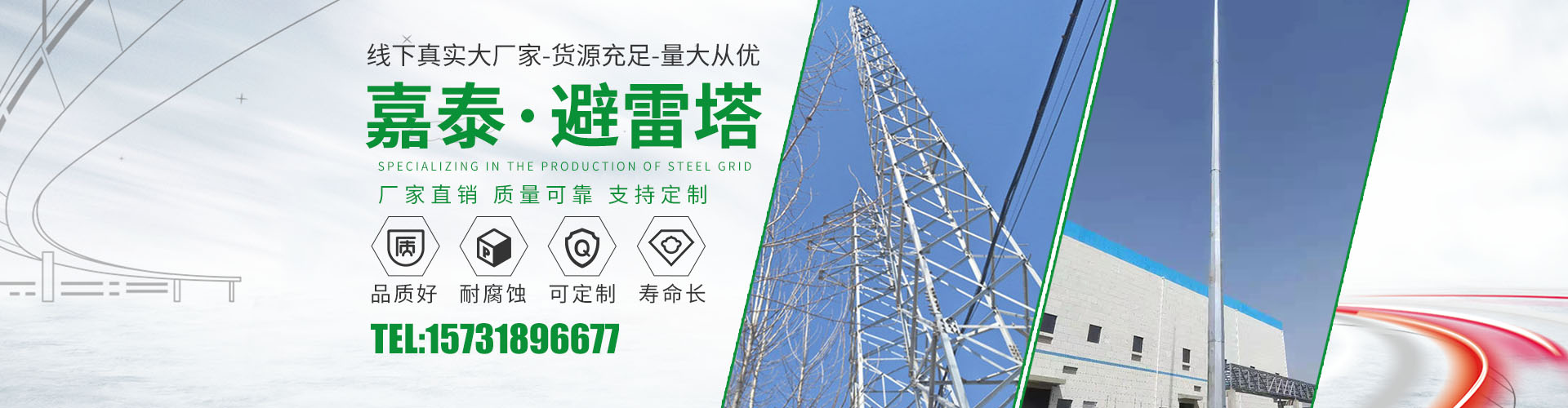 衡水嘉泰鋼結(jié)構(gòu)有限公司位于鐵塔制造之鄉(xiāng)-衡水市景縣廣川經(jīng)濟(jì)開(kāi)發(fā)區(qū),石德、京九鐵路交匯處,距北京、天津、石家莊、濟(jì)南均在2小 時(shí)交通圈內(nèi),交通便利。公司主要產(chǎn)品有:避雷塔、監(jiān)控塔、瞭望塔、消防訓(xùn)練塔、電力架構(gòu)、樓頂工藝塔、廣播電視塔、煙囪塔、測(cè)風(fēng)塔 、電力塔、單管塔、雷達(dá)塔、仿生樹(shù)塔、氣象觀(guān)測(cè)塔、路燈桿,一體化基站、ETC龍門(mén)架等,是一家集設(shè)計(jì),生產(chǎn),運(yùn)輸,安裝,維護(hù)為一體的廠(chǎng)家。主要服務(wù)于鐵塔公司、通信三大運(yùn)營(yíng)商、國(guó)防通訊,鐵路及森 ......